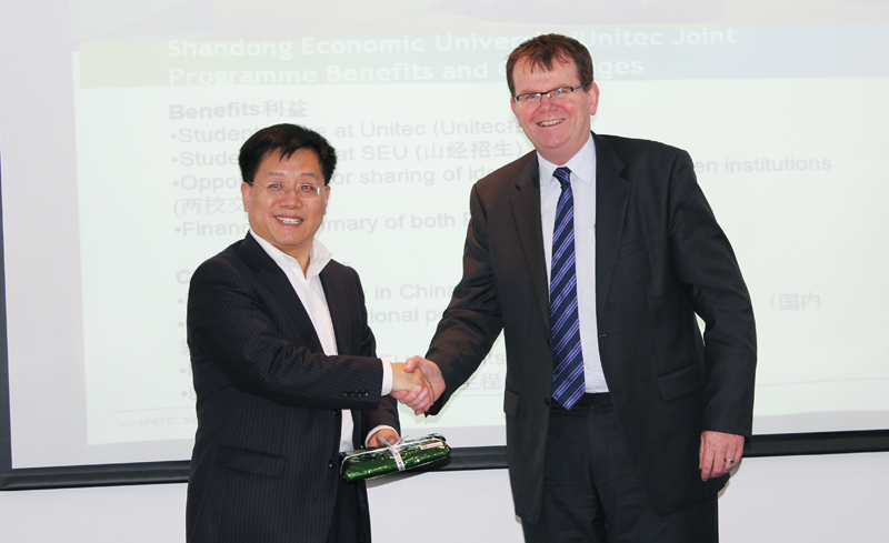 2011年12月2日—11日,应新西兰Wintec理工学院、Unitec理工学院以及澳大利亚北墨尔本高等技术学院(NMIT)等高校邀请,副校长崔友平一行五人对以上高校进行了友好访问,就目前双方合作面临的挑战、学生访学、教师培训、以及学费等问题进行了深入讨论,达成新的合作意向,与Wintec理工学院签署了友好合作协议。 在新西兰Wintec理工学院,副校长Stewart Brougham对我校首次到访表示欢迎。会谈中,双方就教师互访、学生访学游学等进行了探讨并达成初步合作意向。随后,两校签署了友好合作协议,确认今后两校将在教师交流、学生访学等领域开展合作。 Wintec理工学院成立于1912年,位于汉密尔顿市,是新西兰主要的公立高等教育院校之一,是新西兰最大的理工学院之一,拥有三个校区,由12个学院组成,其中商学院、信息技术学院、教育学院、旅游学院、贸易学院、工程学院等吸引了大量留学生,现有学生2,7000余人,教师1200余人。 新西兰Unitec理工学院与我校的合作项目涵盖本科和专科两个层次,目前已经有60多名学生到该校留学。校长Rick Ede会见了崔副校长一行。双方对合作办学、教师培训等项目进行了回顾,就目前合作办学面临的问题和挑战进行了沟通和探讨,对学费支付问题进行了梳理。双方还就选拔我校不同专业的学生赴该校访学一学期达成合作意向,并一致同意将由该校选派的、在我校任教的教师对申请访学的学生进行英语测试,双方约定将就学生访学项目的实施继续进行沟通。崔校长一行还亲切看望了我校赴Unitec理工学院留学生,勉励他们刻苦学习,做好山东财经大学(筹)与Unitec理工学院的交流使者。 澳大利亚北墨尔本高等技术学院(NMIT)自1998年开始与我校合作办学,是与山东省最早开展合作办学的国外院校之一。崔友平一行会见了该校国际发展顾问Mal Rowe、国际项目经理Tim Gilbert等。双方回顾了十余年来的合作历程,对近年来我校教师在该校的培训项目进行了总结,并就目前合作项目中的问题进行了深入交流。双方表示将以新的山东财经大学为平台,继续巩固原有合作项目,提高合作层次,扩大合作领域和规模。